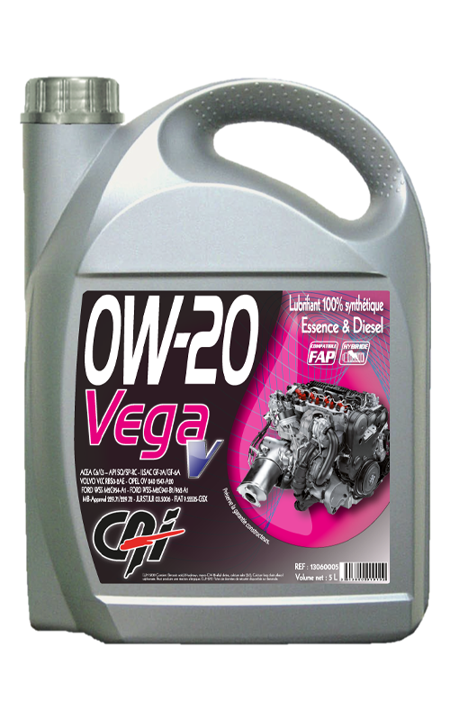 0W-20 Vega V est un lubrifiant moteur 100% synthétique, super multi-grade de dernière génération Volvo. Il assure  une lubrification optimale des moteurs essence ou Diesel modernes équipés de système de post-traitement (FAP, SCR, AdBlue).
