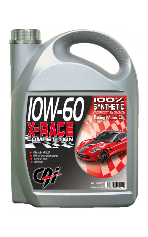 10W-60 X-Race est un lubrifiant moteur à base d’esters et de PAO , lui aussi super multi-grade de dernière génération. Il assure une lubrification optimale des moteurs essence ou Diesel hautes performances et de compétition. Il s’adapte également aux motorisations des véhicules BMW M3/M5 – Ford Focus RS. Il s’utilise sur les véhicules hors garantie constructeur.