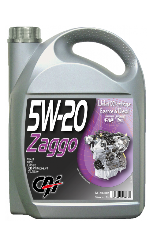 5W-20 Zaggo est un lubrifiant moteur 100% synthétique, super multi-grade de dernière génération Ford. Il assure une lubrification optimale des moteurs essence ou Diesel modernes équipés de système de post-traitement (FAP, SCR, AdBlue). Il s’adapte également de manière spécifique aux motorisations Ecoboost répondant à la norme Ford WSS-M2C948-B. Il préserve la garantie constructeur.