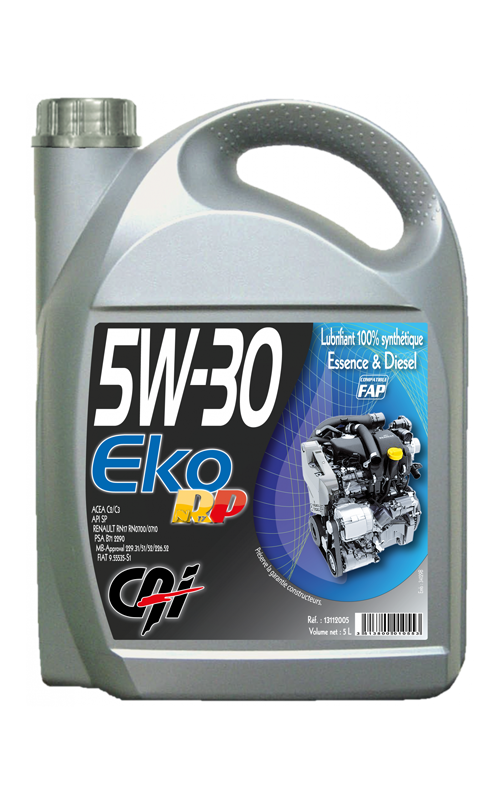 5W-30 EKO RP est un lubrifiant moteur 100% synthétique de dernière génération . Il assure une lubrification optimale des moteurs essence ou Diesel modernes équipés ou non de système de post-traitement (FAP, SCR, AdBlue).
