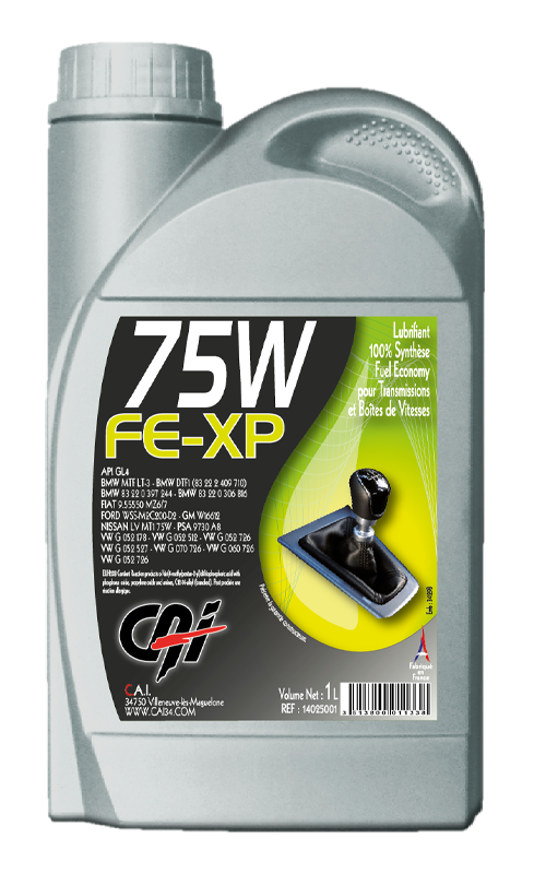 75w FE-XP est un lubrifiant 100% synthétique de type «FE» (Fuel Economy) spécialement formulé pour les organes de transmissions, boîtes de vitesses des véhicules et utilitaires légers fortement sollicités.Automobile et véhicules utilitaires légers.