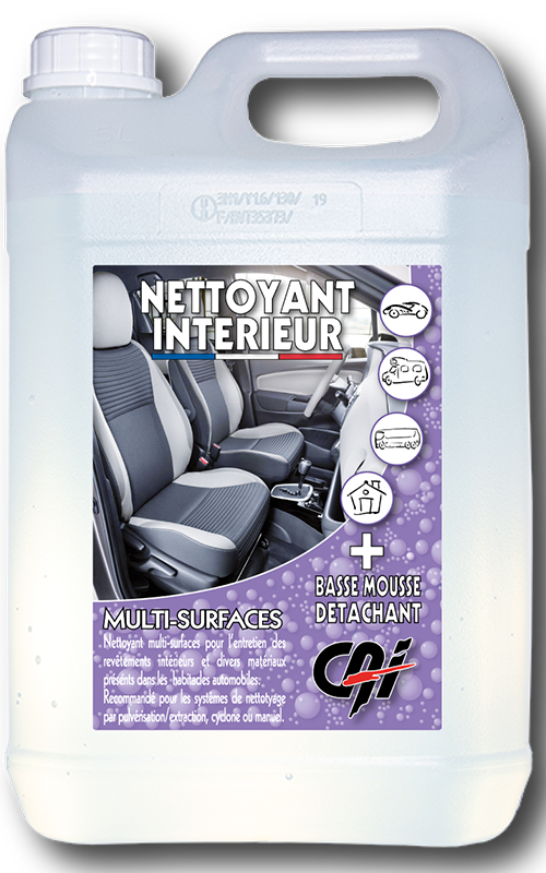 Produit sans phosphates ni solvant. Nettoie et dégraisse les intérieurs et habitacles des véhicules automobiles, PL, transport en commun, …. ainsi que ceux pouvant être en contact avec les denrées alimentaires. Sa formule lui assure une qualité alimentaire qui permettra des contacts fortuits avec les denrées. Efficace sur les tissus, skaï, cuir, alcantara, matières plastiques, composites, surfaces métalliques peintes ou émaillées, inox, moquette, céramique, polyesters, caoutchoucs, polyéthylènes et dérivés.